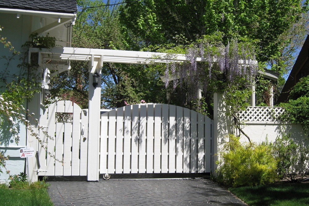 Gate and Wisteria ID: 1657 | This file appears in: Osen House The white gates on the side of the house are complimented by an attached trellis and abundant wisteria. | Creator: Donna and Paul Erickson Download Original File CreatorDonna and Paul Erickson "Gate and Wisteria" appears in: Osen House