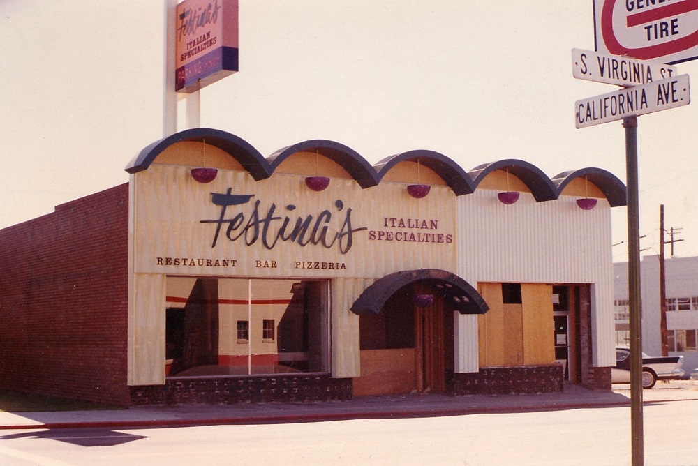 Festina's ID: 1705 | This file appears in: Hale Building Festina's Italian Specialties occupied the building in the 1960s. The restaurant was especially known for its pizza pie. Signage by Federal Sign. | Date: 1964 | Source: Charlie Stroud, Arrow Sign Co. Download Original File SourceCharlie Stroud, Arrow Sign Co.Date1964 "Festina's" appears in: Hale Building