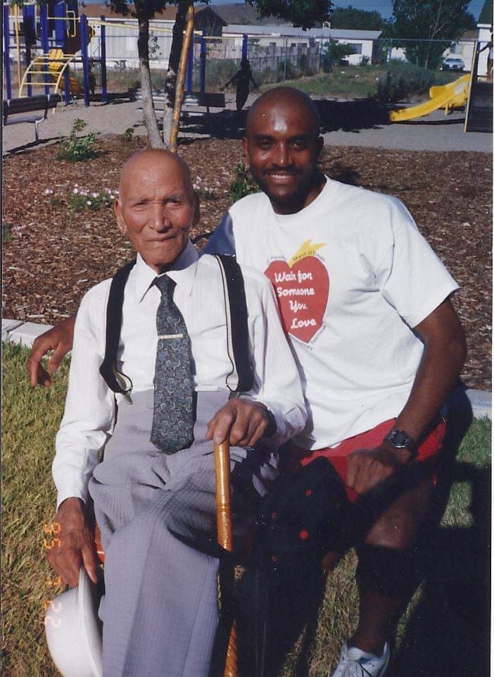 Barbet Bufkin and Gino Osborne ID: 1851 | This file appears in: Bufkin House Barbet Bufkin and his grandson Gino Osborne smile for the camera at Martin Luther King Park in Black Springs. | Source: Gino Osborne Download Original File SourceGino Osborne "Barbet Bufkin and Gino Osborne" appears in: Bufkin House