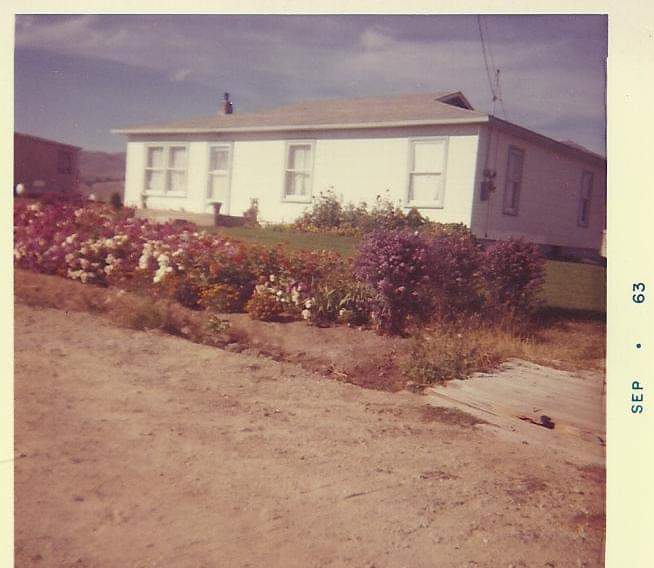 A view of the Bufkin's house in 1963 shows the beautiful rose bushes as well as the unpaved street in front of the house.