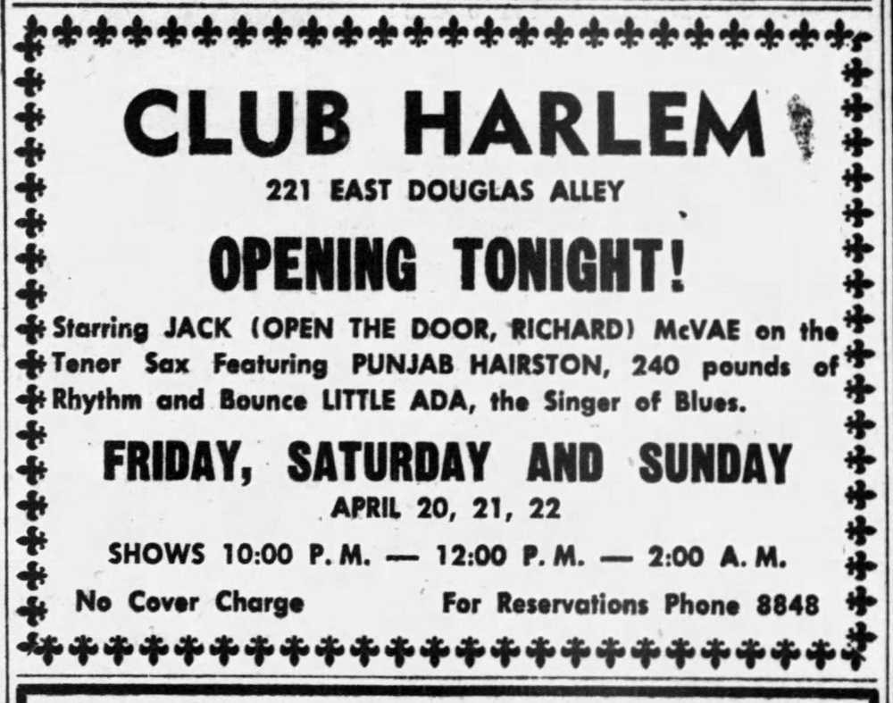 The lineup at Club Harlem ID: 1973 | This file appears in: Club Harlem (site) An ad for the Club Harlem in the Reno Evening Gazette on April 20, 1951 reveals the entertainment lineup for the upcoming weekend. | Date: April 20, 1951 | Source: Reno Evening Gazette Download Original File SourceReno Evening GazetteDateApril 20, 1951 "The lineup at Club Harlem" appears in: Club Harlem (site)
