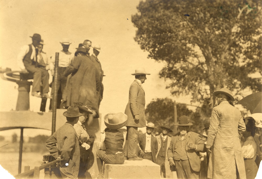 Senator Newlands speaking at the Carson River headgate, one component of the Truckee-Carson Irrigation Project, later known as the Newlands Project. | Source: Special Collections, University of Nevada, Reno LibrariesDownload Original File