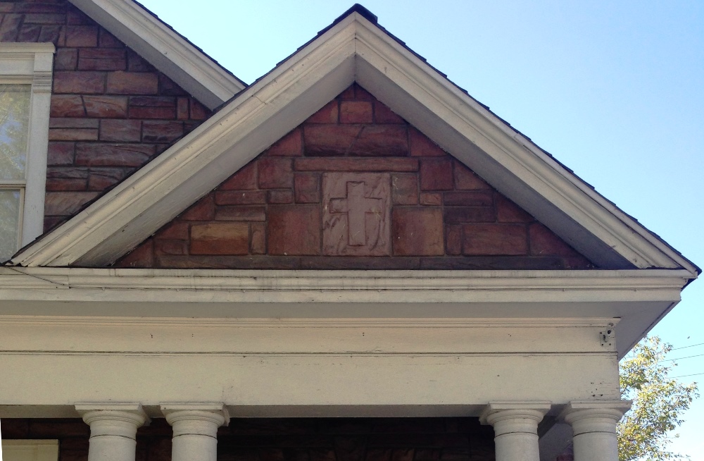A sacred reminder ID: 1055 | This file appears in: Mary Sherman House (site) A stone cross was inserted within the classical pediment over the porch when the Mary Sherman House became the Unity Center. | Creator: Alicia Barber | Date: 2015 Download Original File CreatorAlicia BarberDate2015 "A sacred reminder" appears in: Mary Sherman House (site)