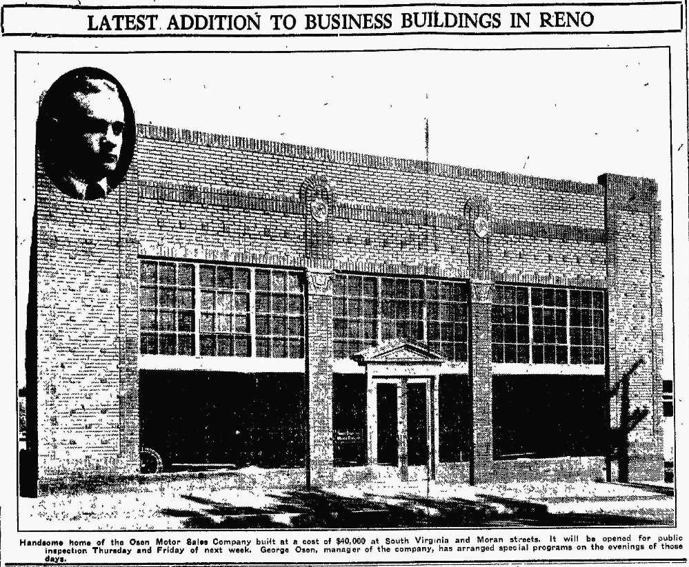 A newspaper article from October 1923 depicts the grand new building in its original form, 50 x 150 feet in size. The original structure later became the northern half of the building. | Date: October 27, 1923 | Source: Reno Evening GazetteDownload Original File