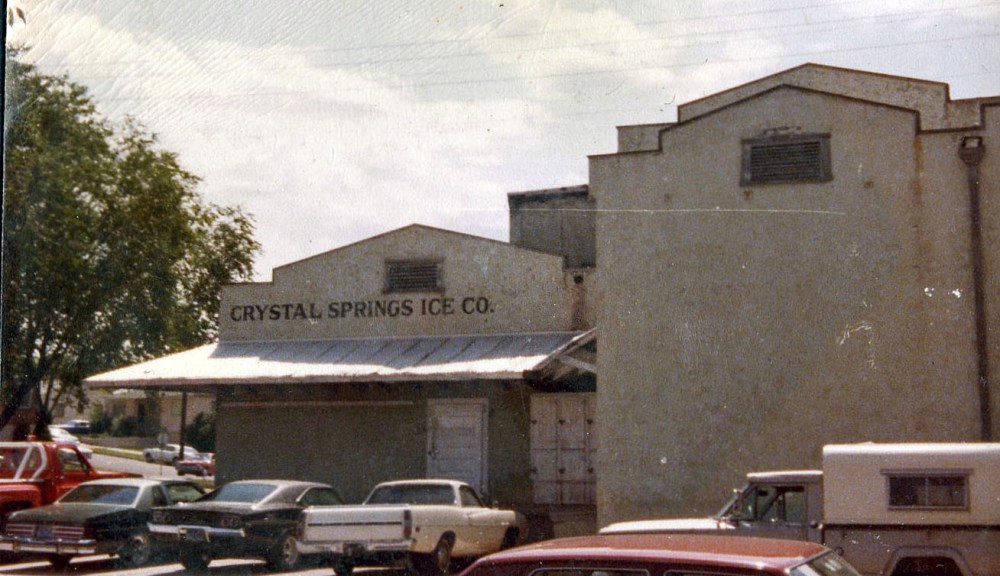 Ice Company ID: 1100 | This file appears in: Crystal Springs Ice Company Seen here in the 1980s, the Crystal Springs Ice Company building underwent many expansions through the years, including the addition of a second artesian well in 1945. | Date: 1980s | Source: Melissa Baker Download Original File SourceMelissa BakerDate1980s "Ice Company" appears in: Crystal Springs Ice Company