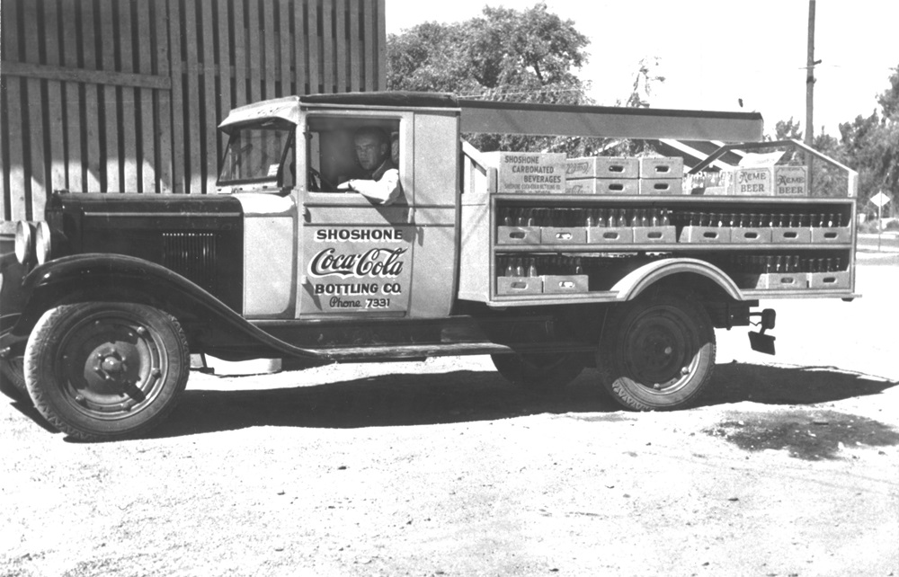Delivery truck, 1930s ID: 1136 | This file appears in: Shoshone Coca-Cola Bottling Company A Shoshone Coca-Cola Bottling Company delivery truck carries a load of carbonated beverages, Acme Beer, and other beverages distributed by the company. | Date: 1930s | Source: Nevada Historical Society Download Original File SourceNevada Historical SocietyDate1930s "Delivery truck, 1930s" appears in: Shoshone Coca-Cola Bottling Company