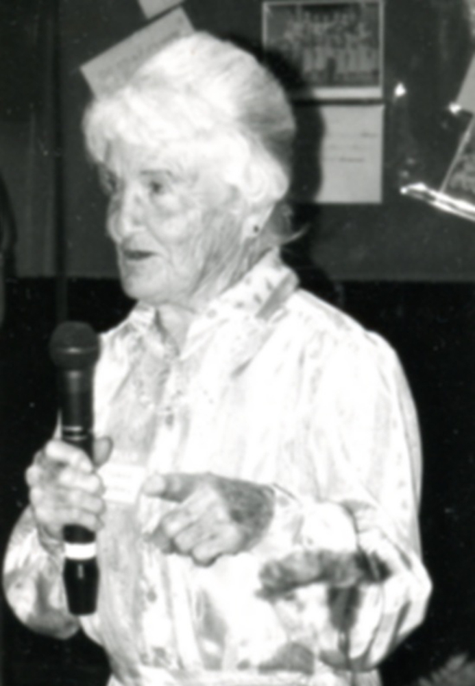 Frances Humphrey, speaking to former students at the 50th reunion of the Reno High Class of 1944.