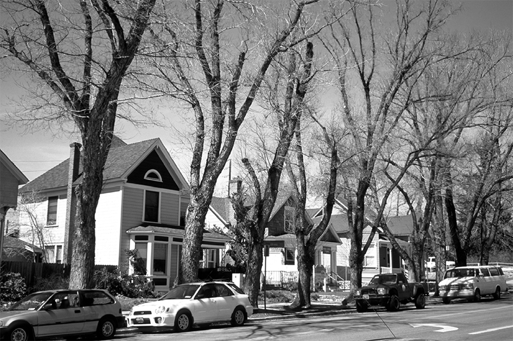 A winter view of the house at 839 N. Center, showing the bay windows and chimney | Creator: Jack Hursh | Date: 2005 | Source: Architectural Resource Assessment Form, Nevada State Historic Preservation Office. Compiled by ZoAnn Campana.Download Original File