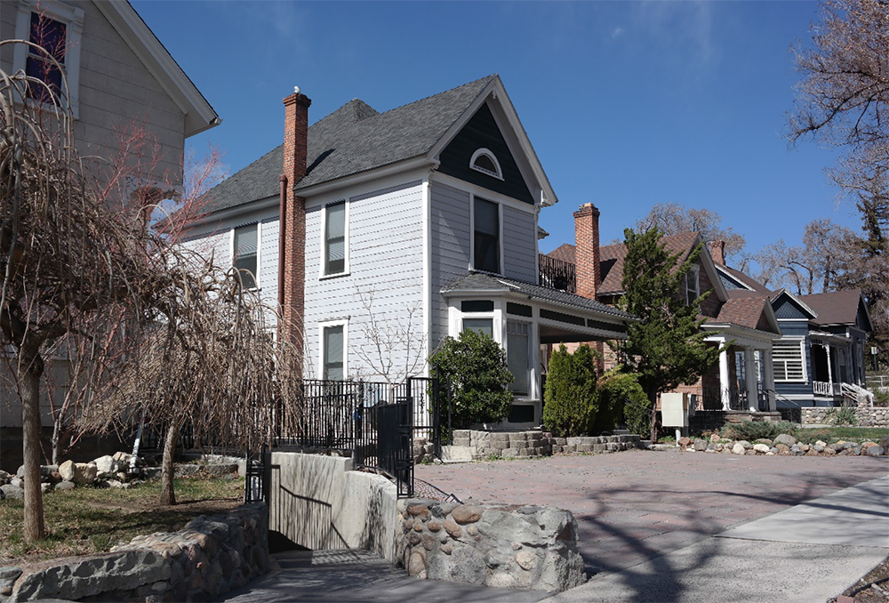 The south side of 839 N. Center ID: 1230 | This file appears in: Berry House (site) Facing northwest, a view of the south side of the Berry House reveals its close connection to the surrounding residences. | Creator: ZoAnn Campana | Date: March 12, 2016 | Source: City of Reno Historical Resources Commission Download Original File CreatorZoAnn CampanaSourceCity of Reno Historical Resources CommissionDateMarch 12, 2016 "The south side of 839 N. Center" appears in: Berry House (site)