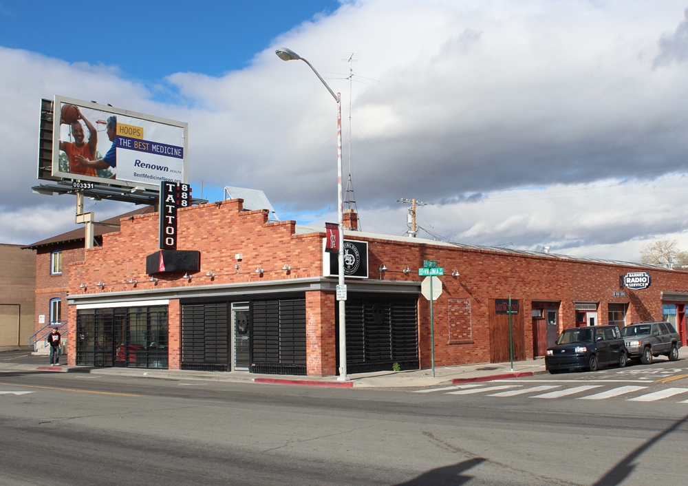 The iconic sign on the building's front facade was removed after the closure of Barnes Radio Service in 2013, but signage still remaining on the building's south end in 2015 revealed its origins. | Creator: Alicia Barber | Date: 2015Download Original File