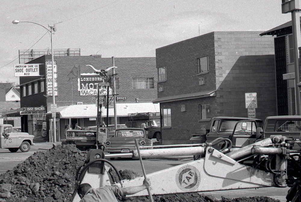 Road construction, 1965 ID: 1317 | This file appears in: Longhorn Motel The motel's charming Longhorn sign peers over construction equipment employed in widening South Virginia Street to accommodate more traffic in 1965. | Date: 1965 | Source: Nevada Department of Transportation Download Original File SourceNevada Department of TransportationDate1965 "Road construction, 1965" appears in: Longhorn Motel