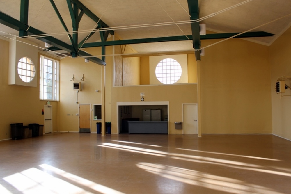 The interior ID: 1431 | This file appears in: California Building The majority of the building's interior consists of the spacious main room, with a catering kitchen, restroom facilities, and a small amount of office and storage space. | Creator: Alicia Barber | Date: 2017 Download Original File CreatorAlicia BarberDate2017 "The interior" appears in: California Building