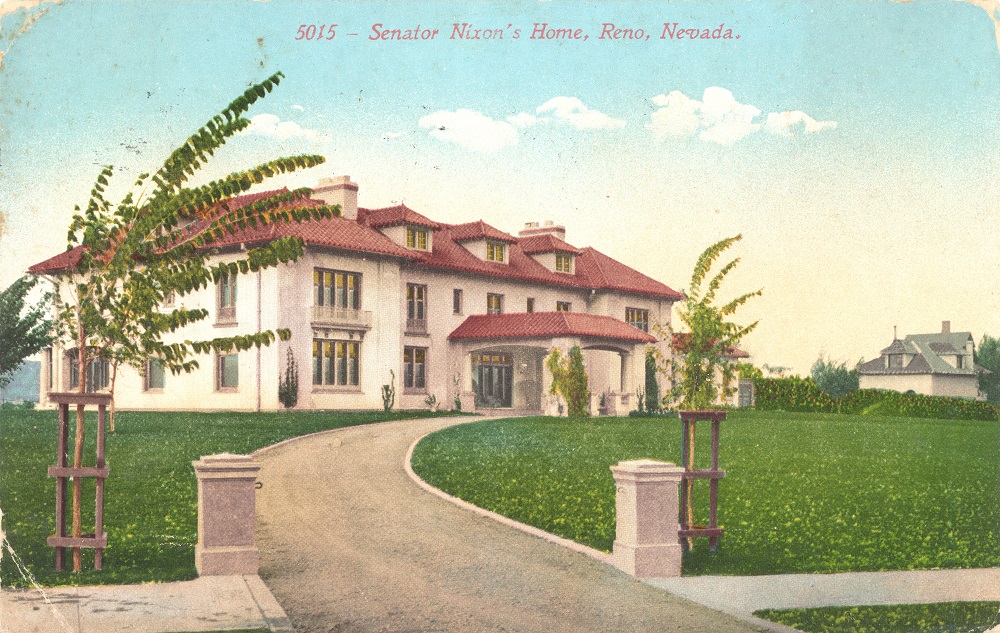 Nixon Mansion, 1913 ID: 1511 | This file appears in: George S. Nixon Mansion The Reno community was so proud of the George Nixon Mansion that it was featured on many postcards published in the city. | Date: 1913 | Source: Alicia Barber Download Original File SourceAlicia BarberDate1913 "Nixon Mansion, 1913" appears in: George S. Nixon Mansion
