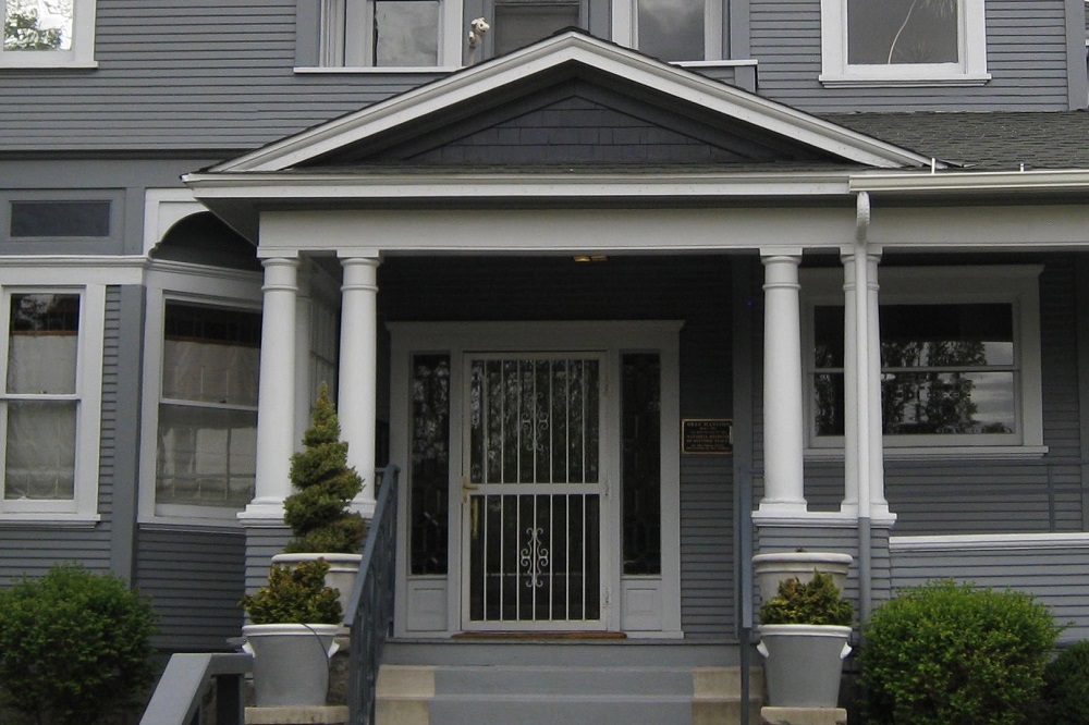 Pediment and columns ID: 1530 | This file appears in: Gray House A pediment is a triangular gable often used over doors and windows. A Tuscan column is unadorned and simple with a plain saucer-shaped capital and bold cornice. | Creator: Donna and Paul Erickson Download Original File CreatorDonna and Paul Erickson "Pediment and columns" appears in: Gray House