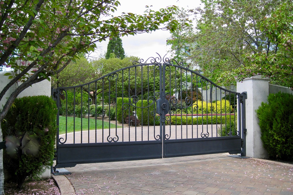 Front gate ID: 1559 | This file appears in: West/Hood House The residence is so secluded that only the front gate can be seen from the street. | Creator: Donna and Paul Erickson Download Original File CreatorDonna and Paul Erickson "Front gate" appears in: West/Hood House
