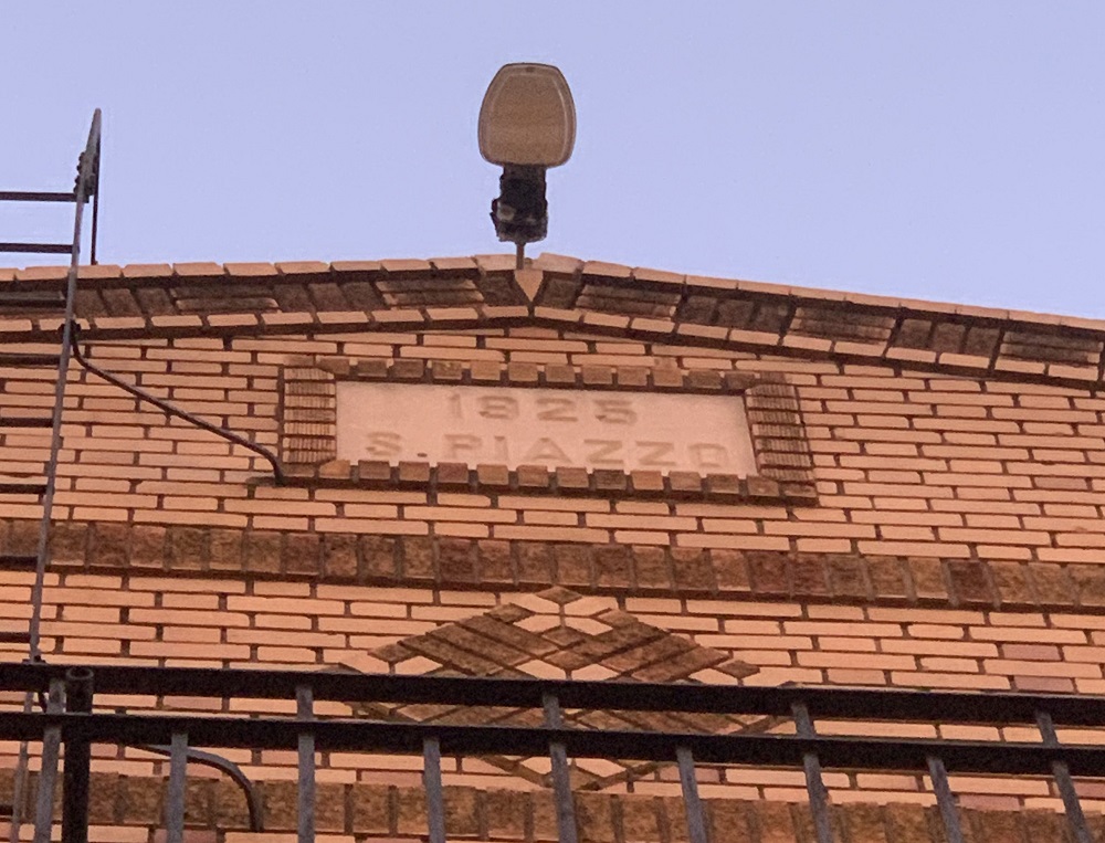 1925, S. Piazzo ID: 1682 | This file appears in: Piazzo Building A datestone near the roof line with the engraved name "S. Piazzo" and "1925" reminds viewers of Santino Piazzo, who had the building constructed more than a century ago. | Creator: Brett Banks | Date: 2020 Download Original File CreatorBrett BanksDate2020 "1925, S. Piazzo" appears in: Piazzo Building