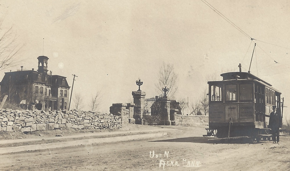 The line to the university ID: 1767 | This file appears in: Reno Traction Company (site) A streetcar idles in front of the main entrance to the University of Nevada, the northernmost point of one of the most popular routes. | Source: Robert Stoldal Download Original File SourceRobert Stoldal "The line to the university" appears in: Reno Traction Company (site)