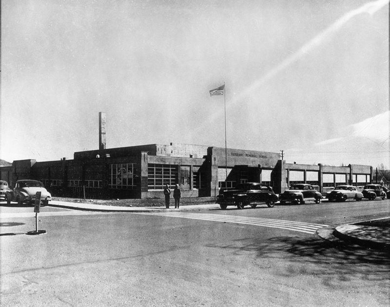 Veterans Memorial School, 1949 ID: 209 | This file appears in: Veterans Memorial School The school soon after its construction. | Date: 1949 | Source: Mella Harmon Download Original File SourceMella HarmonDate1949 "Veterans Memorial School, 1949" appears in: Veterans Memorial School