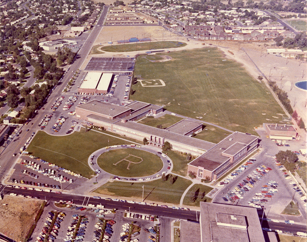 "Aerial view of the newest Reno High School " appears in: Reno High School