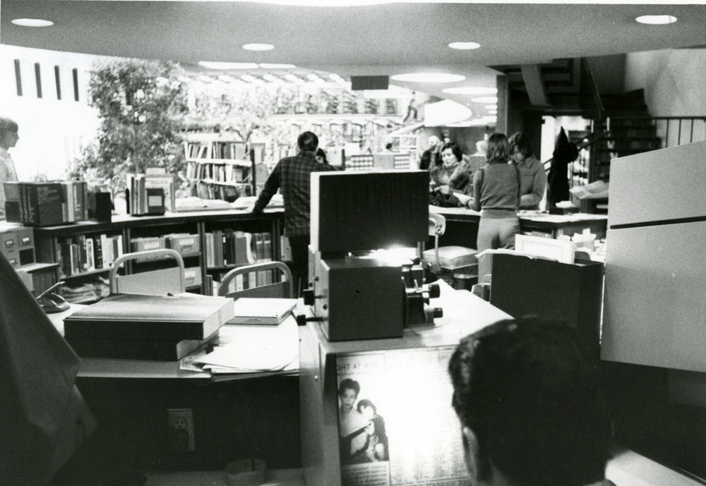 A busy place ID: 291 | This file appears in: Washoe County Library With microfiche machines in the foreground, Washoe County Library patrons check out books at the service desk. | Source: Washoe County Library Download Original File SourceWashoe County Library "A busy place " appears in: Washoe County Library