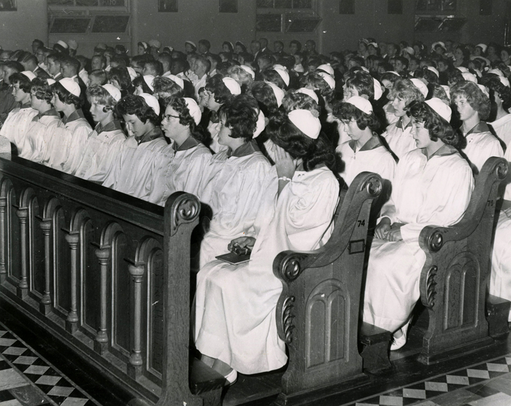 8th grade graduation, 1962 ID: 369 | This file appears in: St. Thomas Aquinas School Boys and girls were separated for the St. Thomas Aquinas graduation exercise. | Date: 1962 | Source: St. Thomas Aquinas Cathedral Download Original File SourceSt. Thomas Aquinas Cathedral Date1962 "8th grade graduation, 1962" appears in: St. Thomas Aquinas School