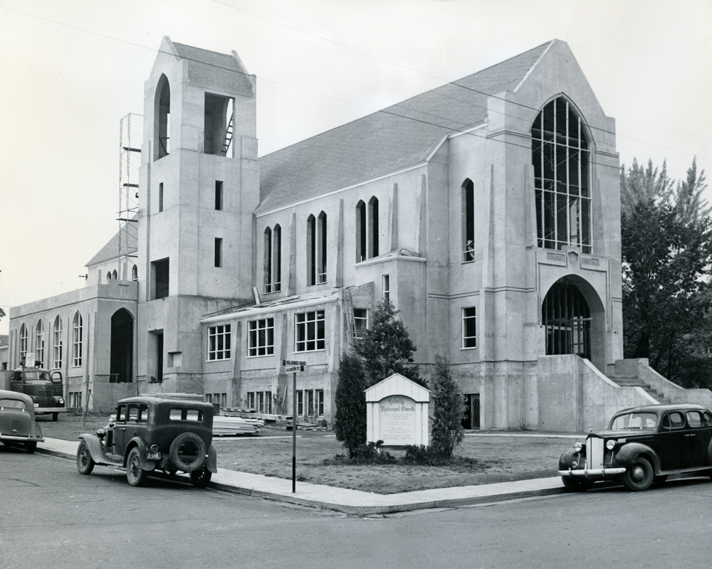 Near completion ID: 432 | This file appears in: Trinity Episcopal Cathedral Trinity Episcopal Church with construction almost completed, 1948 or 1949. | Date: ca. 1948 | Source: Nevada Historical Society Download Original File SourceNevada Historical Society Dateca. 1948 "Near completion " appears in: Trinity Episcopal Cathedral