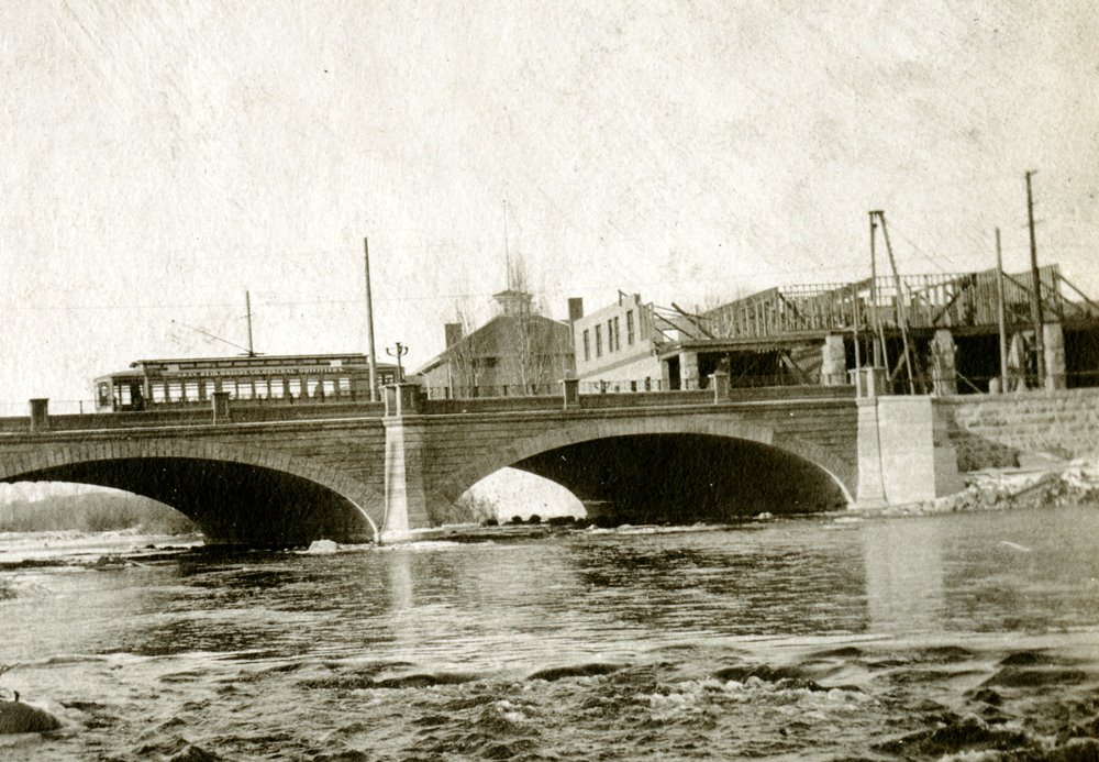 Construction of the new Masonic Lodge, underway in 1905, was easily viewed from the streetcars that ran down Virginia Street and over the neighboring bridge.
