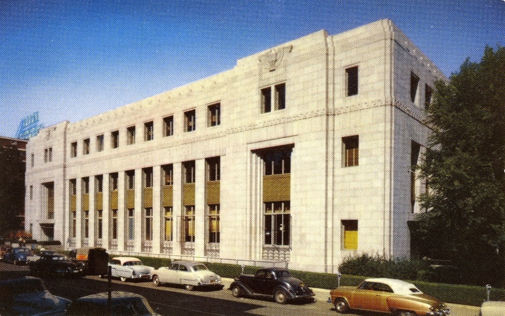 The postcard reads, "Modern in every respect and conveniently located in the very heart of the business section of Reno is the Federal building and Post Office. Receipts in 1953 will probably approach the three-quarters of a million dollar mark, which is a satisfying indication of Reno's business trend."