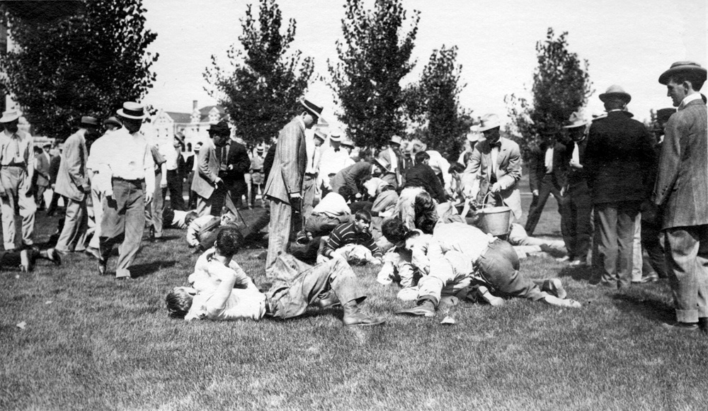 Cane rush participants ID: 618 | This file appears in: University Quad 1910 Cane Rush participants on the quad. | Date: 1910 | Source: University Archives, University of Nevada, Reno Libraries Download Original File SourceUniversity Archives, University of Nevada, Reno LibrariesDate1910 "Cane rush participants" appears in: University Quad