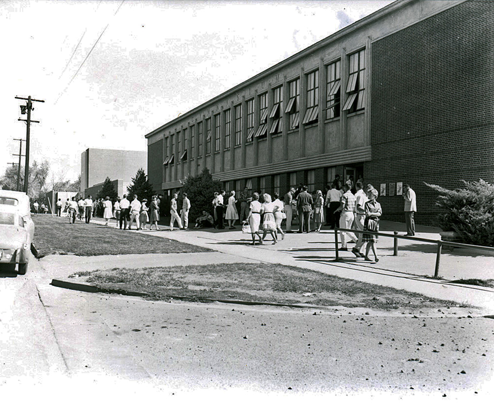 Registration ID: 681 | This file appears in: Virginia Street Gymnasium Students registered for classes at the Virginia Street Gymnasium in the 1950s. | Date: 1950s | Source: University Archives, University of Nevada, Reno Libraries Download Original File SourceUniversity Archives, University of Nevada, Reno LibrariesDate1950s "Registration" appears in: Virginia Street Gymnasium