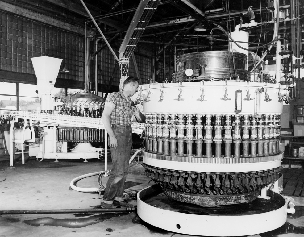 Sealing cans, 1950s ID: 710 | This file appears in: Reno Brewing Company Bottling Plant Operated by a man nicknamed “Slim,” pictured here, this machine sealed cans of Sierra lager. The cans were then boxed and shipped to stores throughout the area. | Date: 1950s | Source: Nevada Historical Society Download Original File SourceNevada Historical SocietyDate1950s "Sealing cans, 1950s" appears in: Reno Brewing Company Bottling Plant