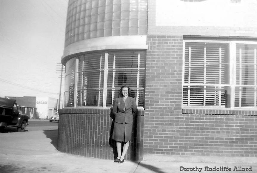 Dorothy Radcliffe worked in the accounting department of the Reno Brewing Company from 1943 to 1949. One snowy New Year's Eve, Lou Allard, an employee with the company since the 1930s, offered her a ride home, and their romance began. They married in 1948. Here, Dorothy stands in front of the bottling plant in 1946. | Date: 1946 | Source: Lou AllardDownload Original File