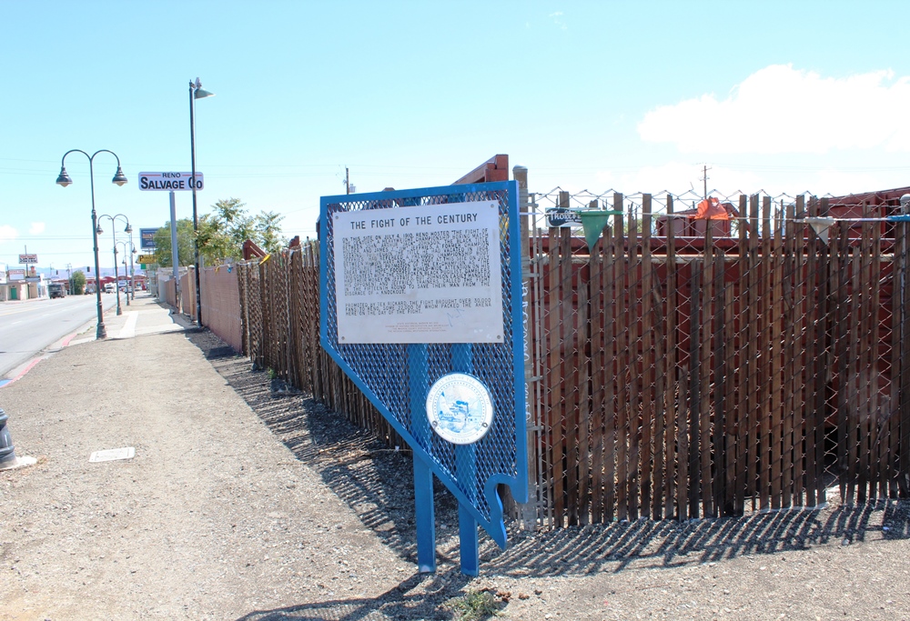 Arena site ID: 729 | This file appears in: Johnson-Jeffries Fight (site) No trace of the arena remains at the site of the famous fight, which is commemorated by a state historical marker located on the SE corner of Toano and E. 4th Streets. | Creator: Alicia Barber | Date: 2014 Download Original File CreatorAlicia BarberDate2014 "Arena site" appears in: Johnson-Jeffries Fight (site)