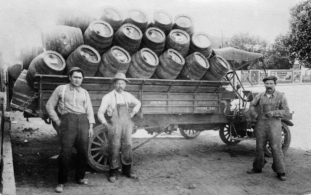 Early deliveries ID: 749 | This file appears in: Reno Brewing Company (site) Workers stand with one of the company's earliest delivery trucks. Advertisements stated, "An order to phone 581 will bring you promptly a case of pints or quarts, as you desire." | Source: Nevada Historical Society Download Original File SourceNevada Historical Society "Early deliveries" appears in: Reno Brewing Company (site)