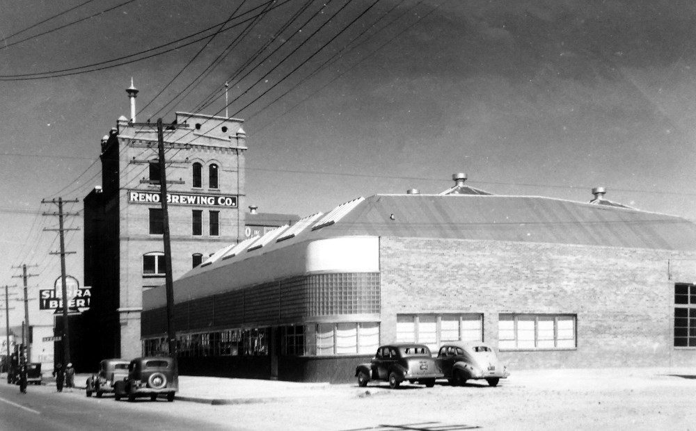 With the construction of the Reno Brewing Company's new adjacent bottling plant building in 1940 (in the foreground), the company was able to further expand production, which continued in the older building. | Source: Nevada Historical SocietyDownload Original File