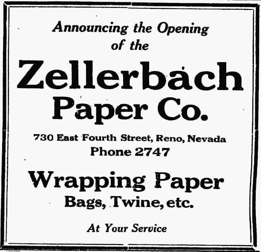 The Reno branch of the Zellerbach Paper Company had previously been located just a bit further east, at 730 E. 4th Street, as seen in this newspaper advertisement from 1926. | Date: October 27, 1926 | Source: Reno Evening GazetteDownload Original File