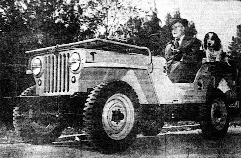 The first of the "Peace-Time Jeeps" to arrive in Reno, distributed by the Tovrea Farm Equipment Co., was given a trial run with Mayor Harry Stewart at the wheel in October 1945.