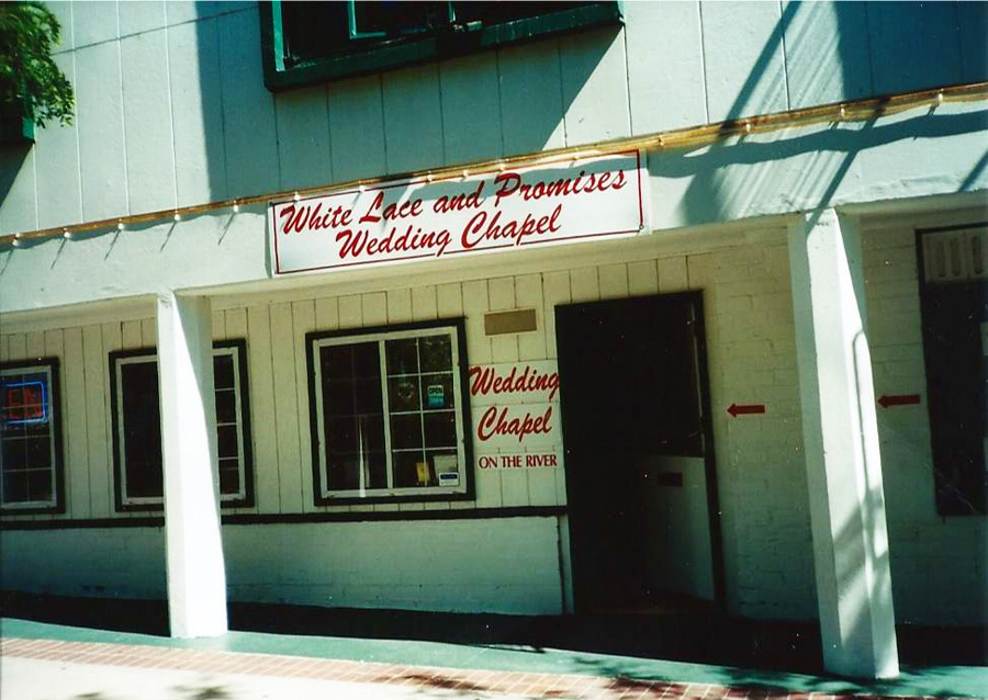 White Lace and Promises ID: 894 | This file appears in: Hughes/Truckee Lane Building The popular riverfront wedding chapel was housed on the building's lower level for many years. | Creator: Donnelyn Curtis Download Original File CreatorDonnelyn Curtis "White Lace and Promises" appears in: Hughes/Truckee Lane Building