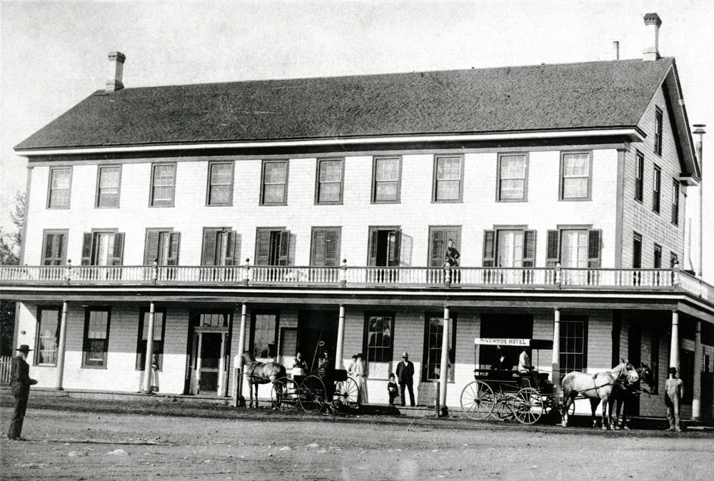 After taking ownership of the property, Lake's son-in-law, William Thompson, renamed it the Riverside Hotel, thoroughly renovated the interior, and improved the grounds. A free coach met all arriving passenger trains to transport guests to the hotel. | Source: Special Collections, University of Nevada Reno LibrariesDownload Original File