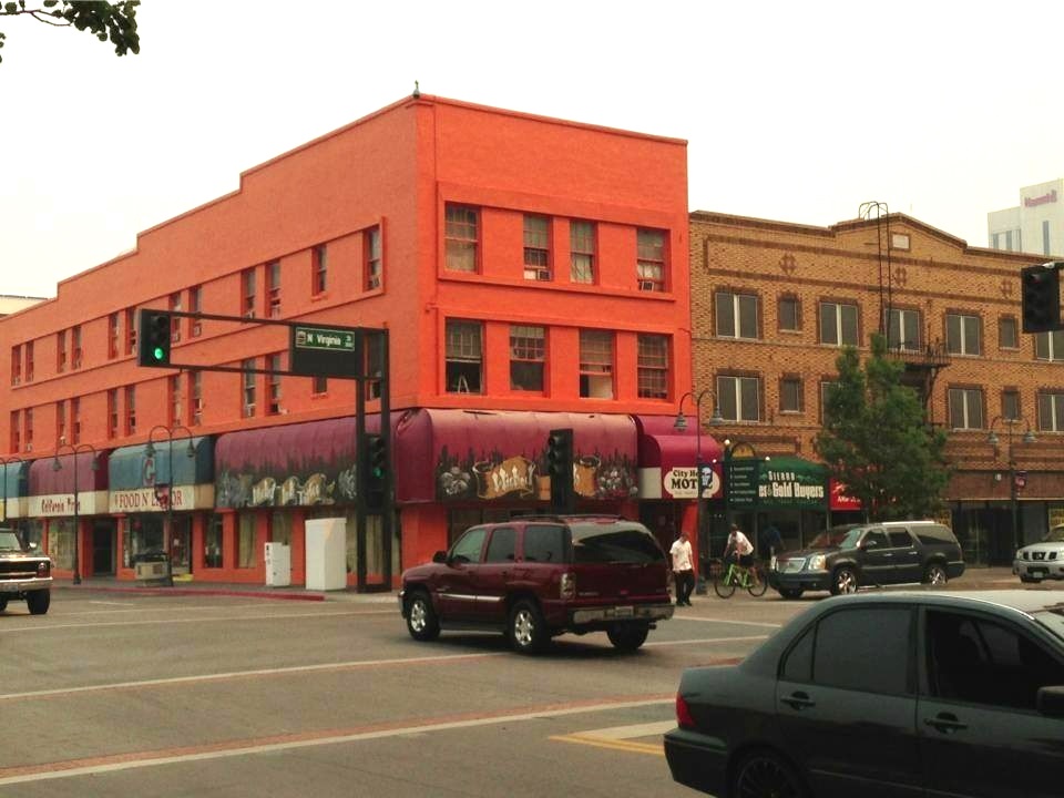Bright orange, 2014 ID: 1548 | This file appears in: St. Albans Hotel (site) The building underwent a shocking transformation in 2014 with a coating of bright orange. | Creator: Mercedes de la Garza | Date: 2014 Download Original File CreatorMercedes de la GarzaDate2014 "Bright orange, 2014" appears in: St. Albans Hotel (site)