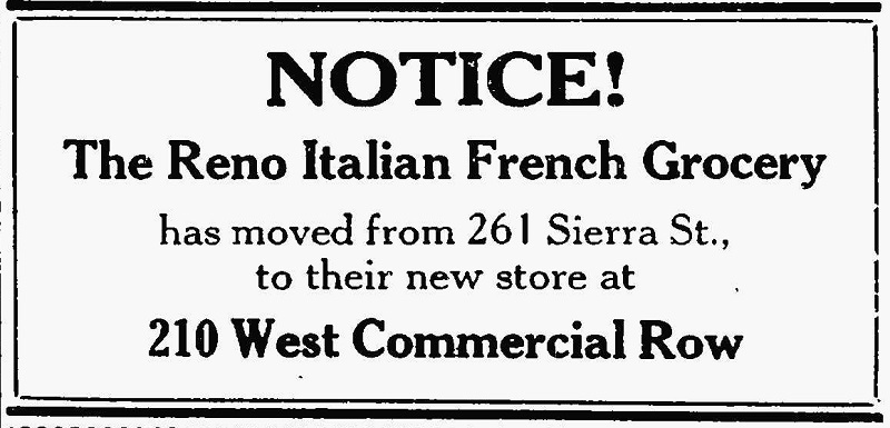 The new building opens in 1931 ID: 1874 | This file appears in: DeGiacoma Building A 1931 advertisement announces the grocery's move from Sierra Street to its new location on Commercial Row. | Date: July 22, 1931 | Source: Reno Evening Gazette Download Original File SourceReno Evening GazetteDateJuly 22, 1931 "The new building opens in 1931" appears in: DeGiacoma Building