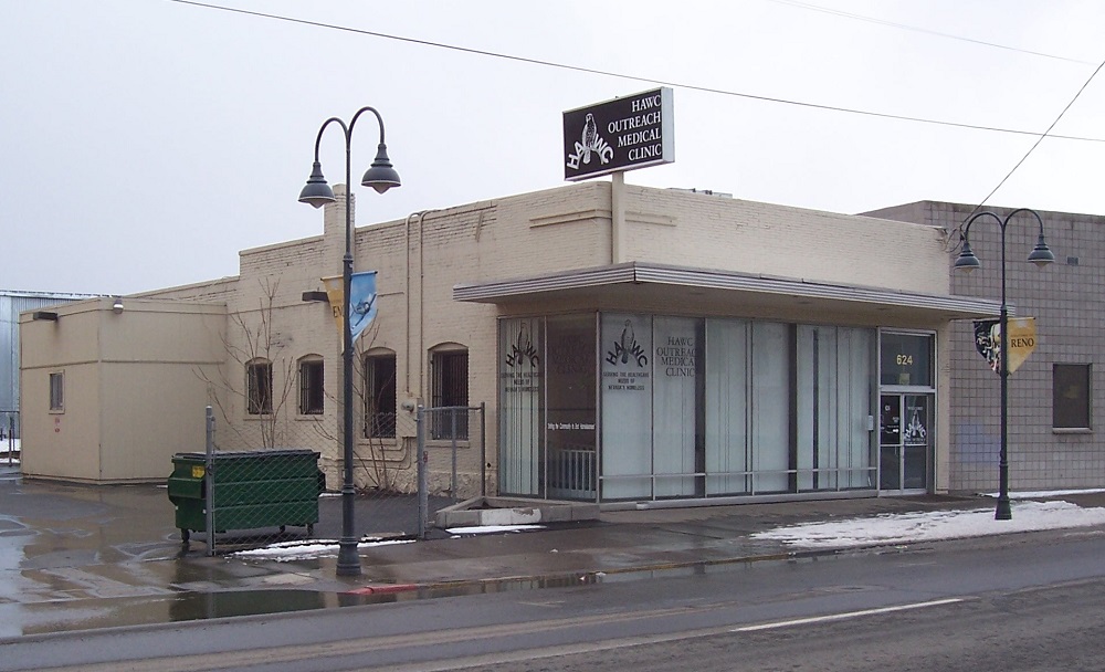Sometime after the Reno Fire Department vacated it in 1950, the fire station building was extensively remodeled, as seen in this January 2008 photo when it housed the HAWC Outreach Medical Clinic. | Creator: Jon Wagner | Rights: 2008Download Original File