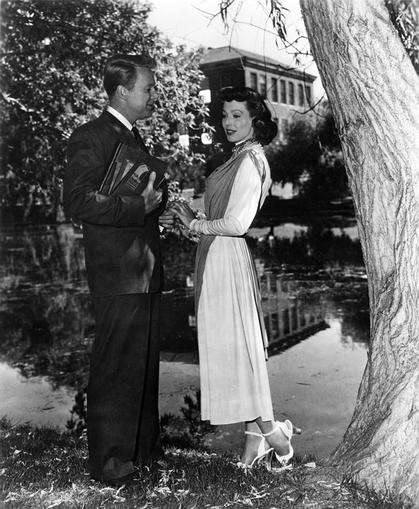 From the 1949 movie "Mother is a Freshman" - Van Johnson and Loretta Young standing at the edge of Manzanita Lake. | Creator: Reno News Service | Date: ca. 1949 | Source: University Archives, University of Nevada, Reno Libraries Download Original File