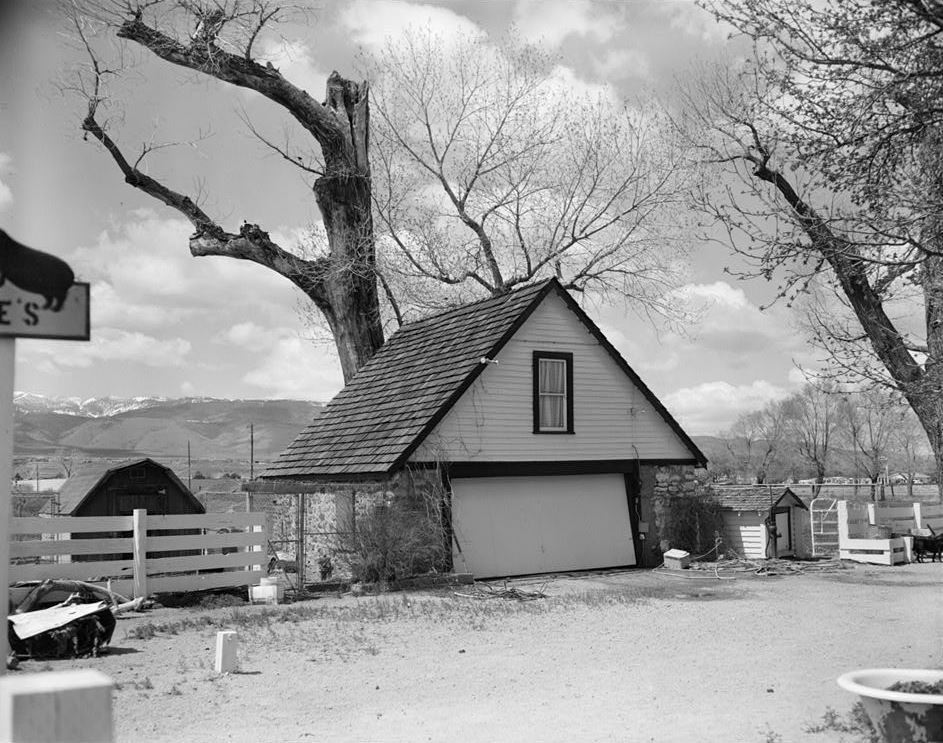 The current double-car garage appears to have originally been a cold storage as it is constructed with heavy stone walls. | Creator: Martin Fisher | Date: 1994 | Source: Historic American Buildings Survey, Library of CongressDownload Original File