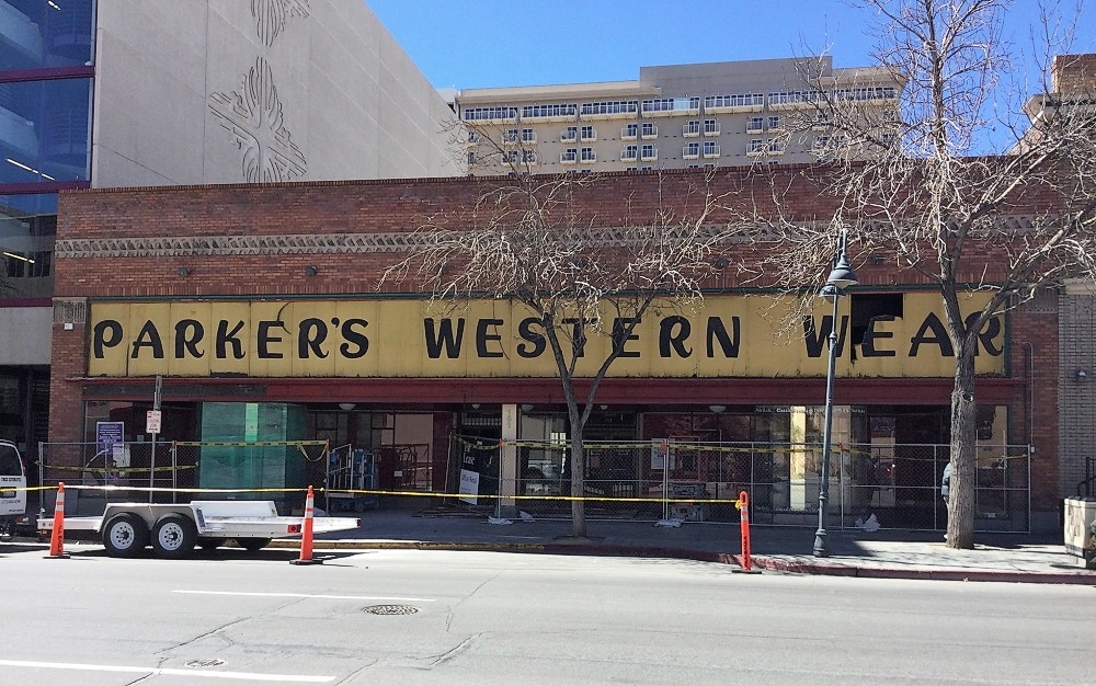 Under renovation, 2022 ID: 1870 | This file appears in: Barengo Building Workers renovating the building in 2022 uncovered the Parker's Western Wear sign that once stretched across its front. | Date: 2022 Download Original File Date2022 "Under renovation, 2022" appears in: Barengo Building