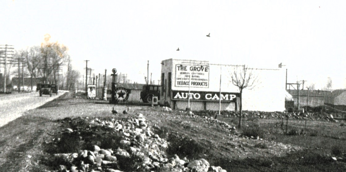 The Grove Auto Camp ID: 2170 | This file appears in: Farris Motel In the mid-1920s, Julius Redelius opened an auto camp he called The Grove, where motorists could set up tents beside their cars. | Source: Neal Cobb Collection Download Original File SourceNeal Cobb Collection "The Grove Auto Camp" appears in: Farris Motel