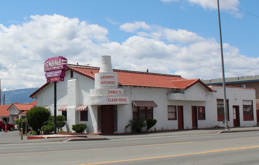 Farris Apartments, 2014 ID: 427 | This file appears in: Farris Motel Now operating as apartments, the Farris retains its red-and-white charm and distinctive wedding cake-like tower over the front entrance. | Creator: Alicia Barber | Date: 2014 Download Original File CreatorAlicia BarberDate2014 "Farris Apartments, 2014" appears in: Farris Motel