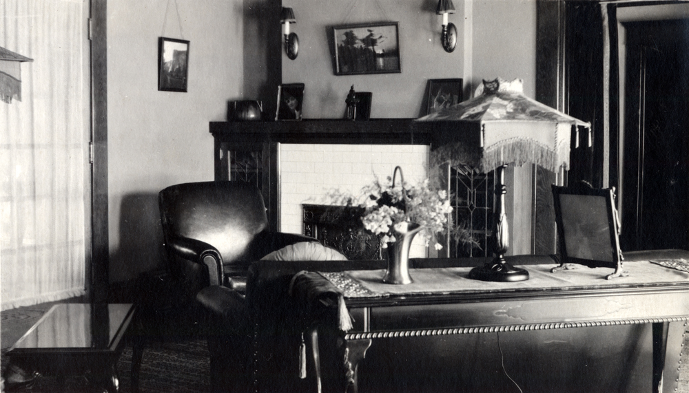 Interior view ID: 666 | This file appears in: Frisch House The fireplace and furnishings in the interior of the Frisch house. | Source: Special Collections, University of Nevada, Reno Libraries Download Original File SourceSpecial Collections, University of Nevada, Reno Libraries "Interior view" appears in: Frisch House