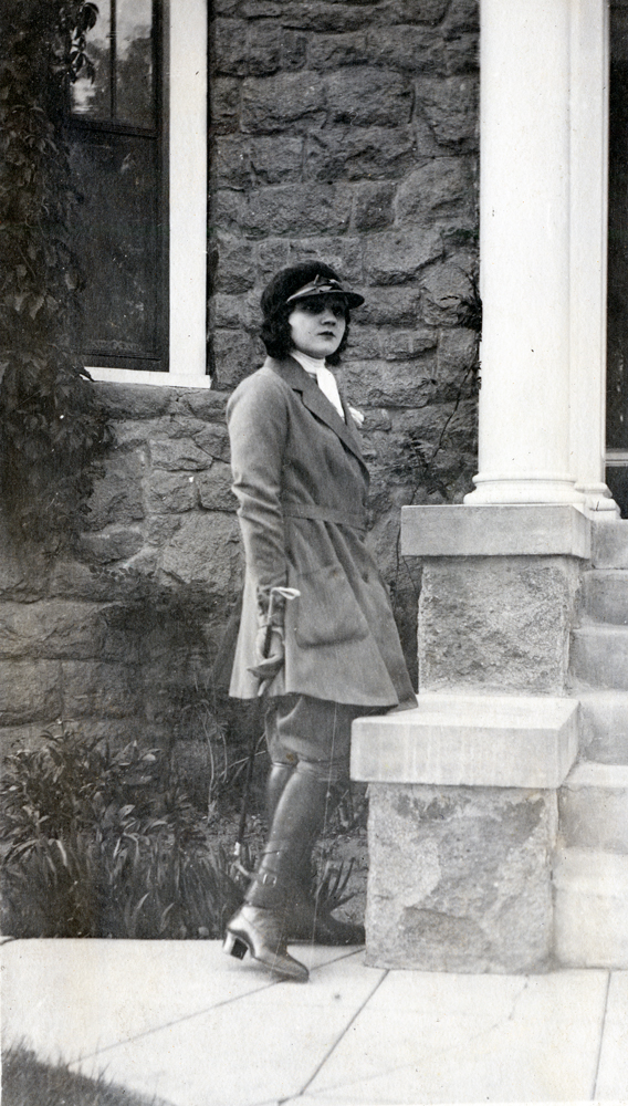 Family member ID: 668 | This file appears in: Frisch House One of the Frisch daughters in front of the family home. | Source: Special Collections, University of Nevada, Reno Libraries Download Original File SourceSpecial Collections, University of Nevada, Reno Libraries "Family member" appears in: Frisch House