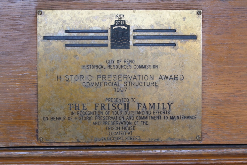 Historic Plaque ID: 673 | This file appears in: Frisch House In 1997, the Frisch House was given a Historic Preservation Award by the City of Reno's Historical Resources Commission. | Creator: Alicia Barber | Date: 1997 Download Original File CreatorAlicia BarberDate1997 "Historic Plaque" appears in: Frisch House